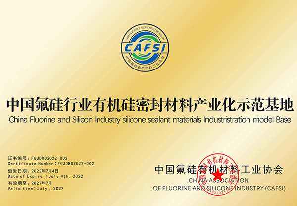 - 132022年-3.15全國產品和服務質量誠信示范企業142022-2027.7 CAFSI有機硅密封材料產業化示范基地