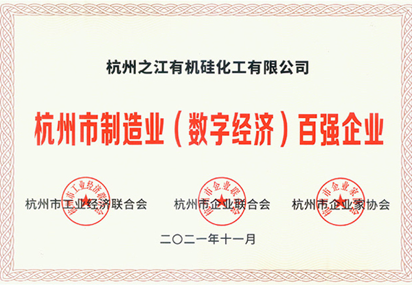- 272021年11月 杭州市制造業(數字經濟)百強企業(之江有機硅)282021年(2020年度浙江省建筑幕墻門窗綜合“十強企業”)證書