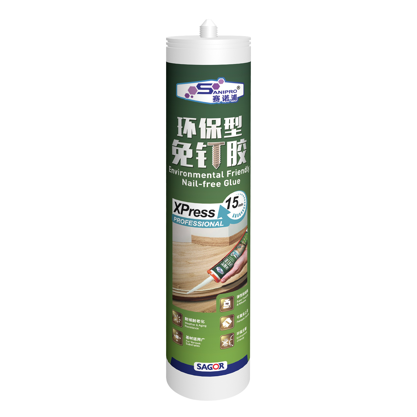 Sainopu ? Environmentally friendly nail free adhesive is a silicone modified single component structural sealant suitable for multi-purpose high-strength elastic bonding. After curing at room temperature, it has high initial strength, tensile strength, bonding strength, strong temperature resistance, flexible connection with the substrate, and is green, environmentally friendly, and pollution-free. It is usually used in various occasions that require bonding in decoration and maintenance.
