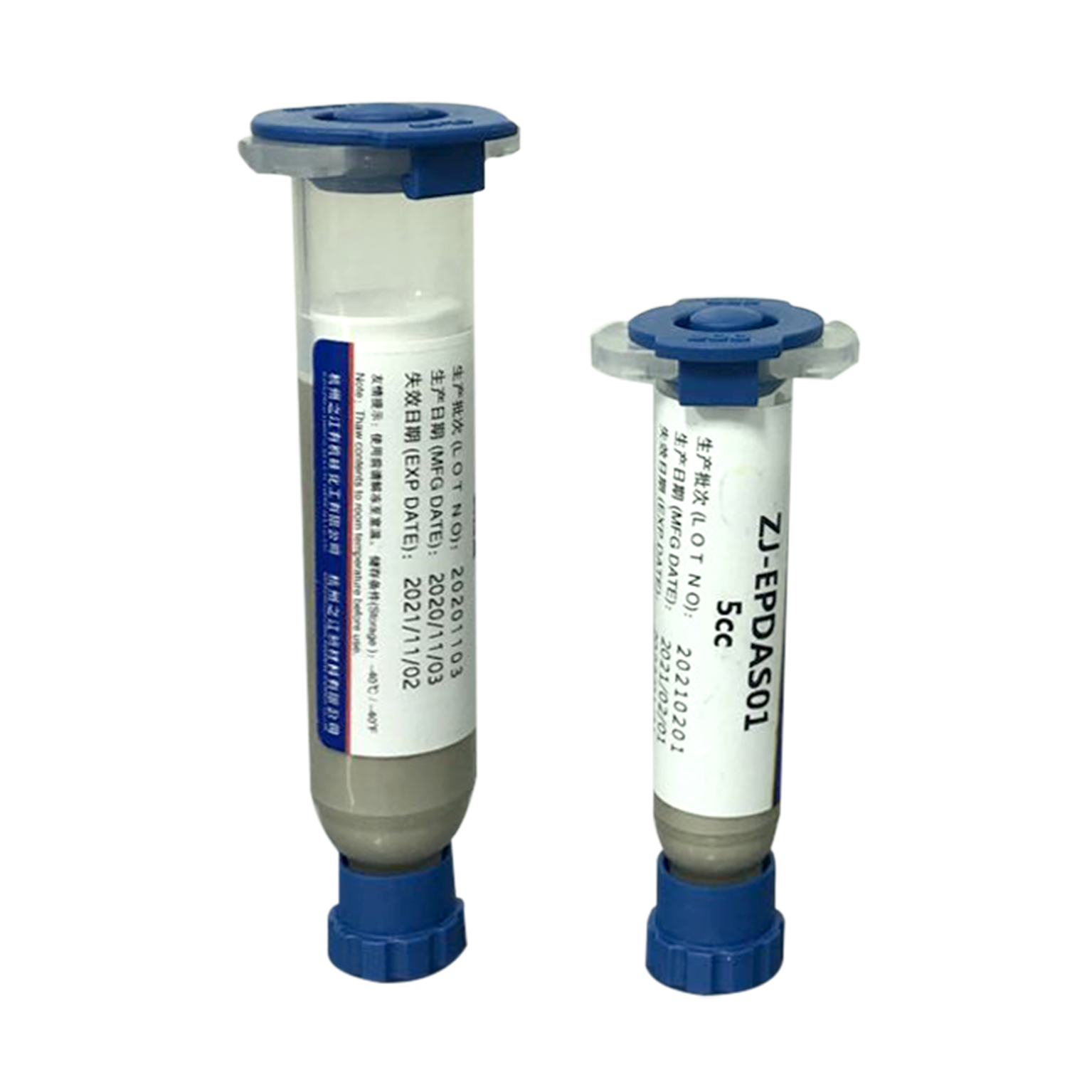ZJ-EPDAS01 is a single component conductive silver adhesive based on epoxy resin, suitable for bonding small-sized IC chips, LED chips, and metal lead frames/substrates